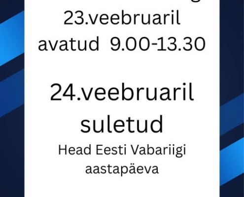 24.02 raamatukogud suletud. Head Eesti Vabariigi aastapäeva!