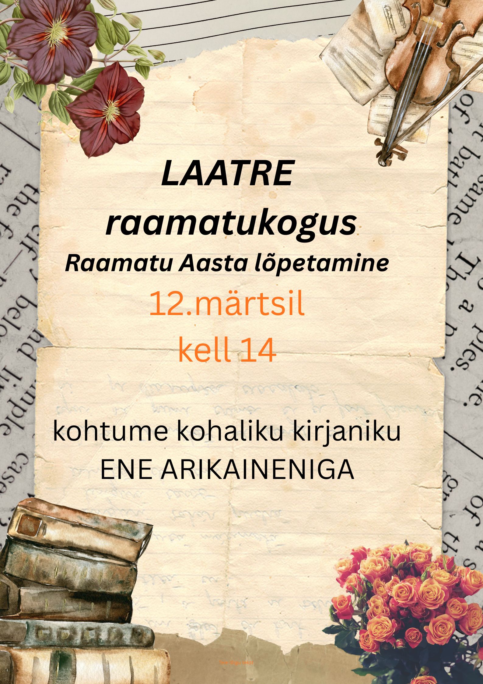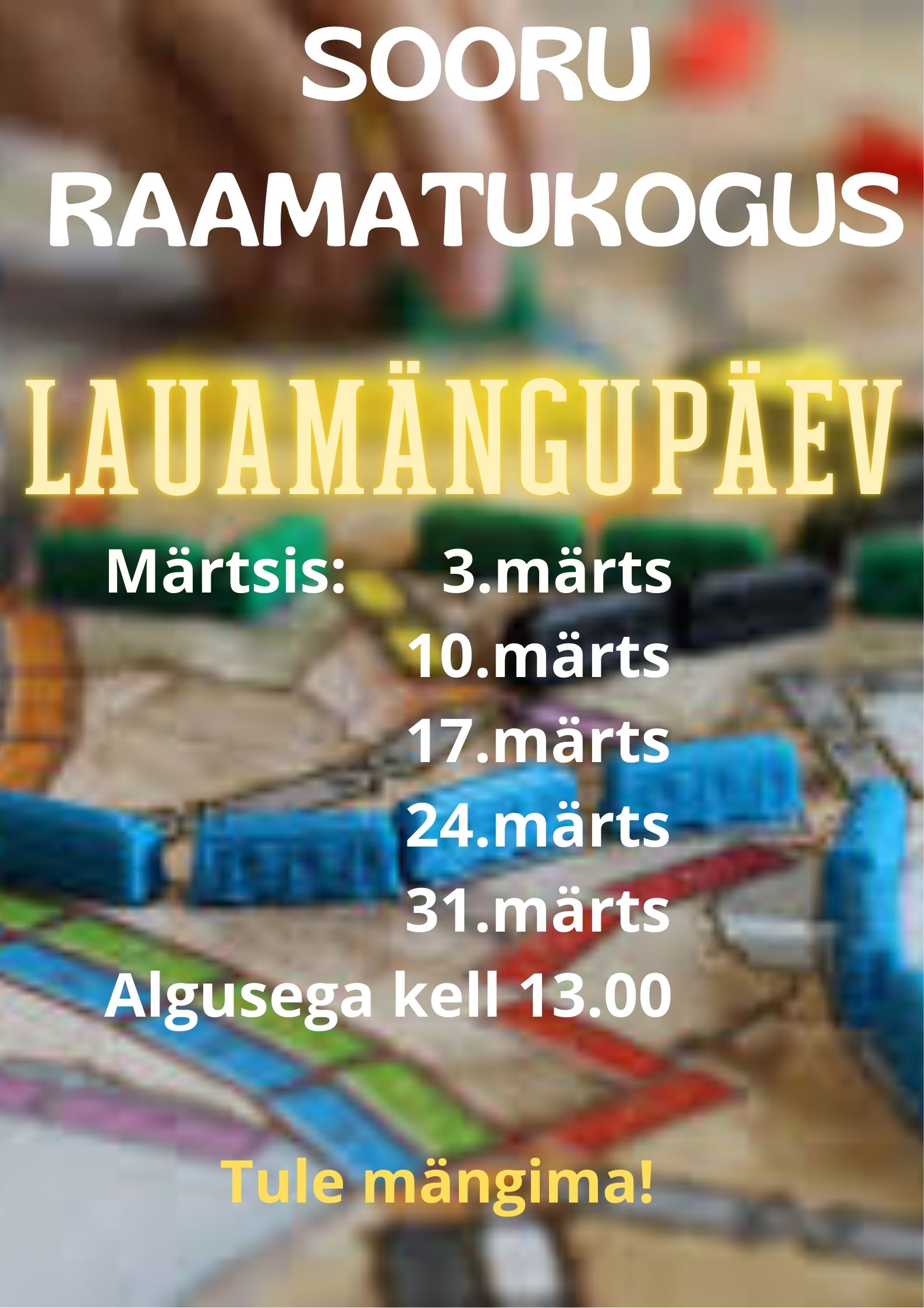 Sooru raamatukogu avatud 05.03 kell 10.30 – 15.45