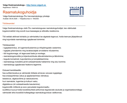 8. aprill Sooru raamatukogu avatud 12.30-16.00