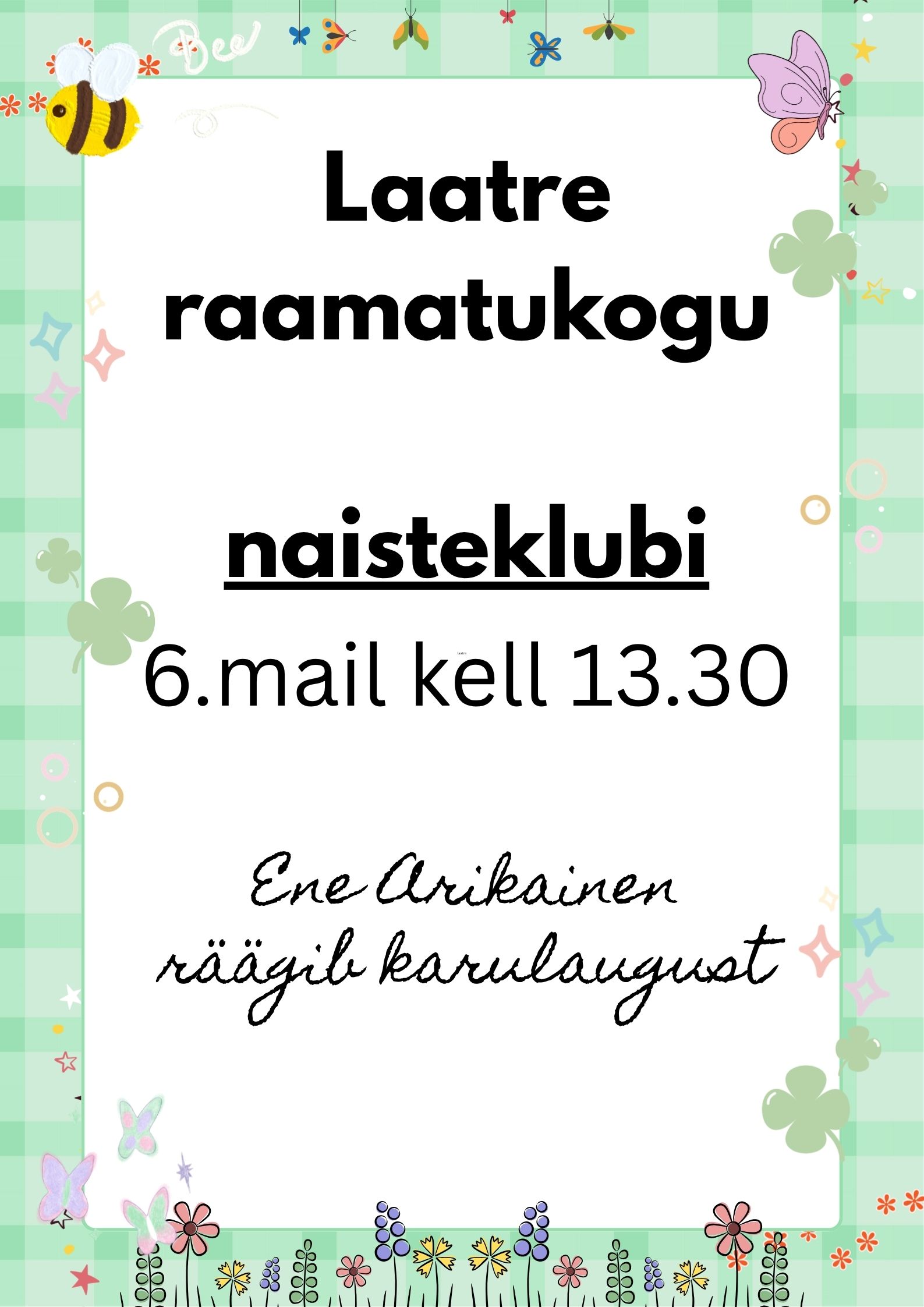 Mobiilne laenutamine toimub 8.05; 22.05; 5.06 ja 19.06 kl 10.00-10.30 Tsirgumäe/Taheva sanatoorium ja kl 12.00-13.00 Koikküla bussipeatus