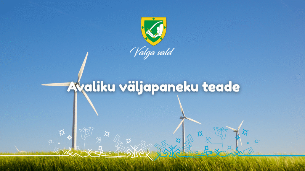 Valga Vallavalitsus korraldab Valga valla tuulepargi eriplaneeringu asukoha eelvaliku otsuse eelnõu ja keskkonnamõju strateegilise hindamise esimese etapi aruande avalik väljapaneku