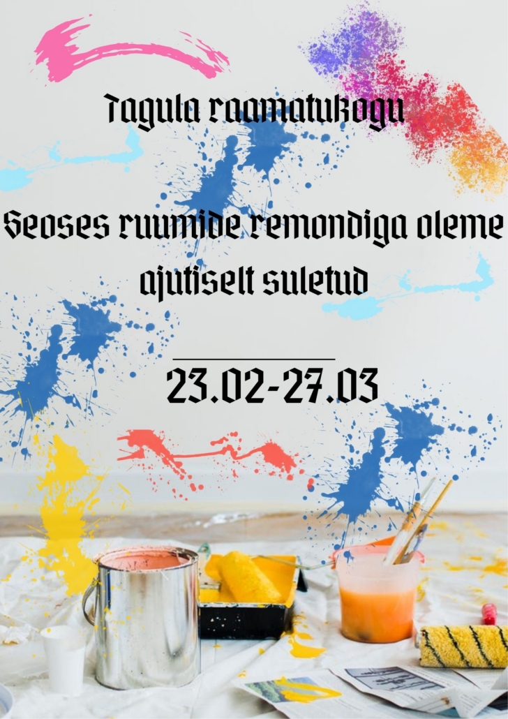 Seoses ruumide remondiga on Tagula Raamatukogu ajutiselt suletud. 23.02–27.03